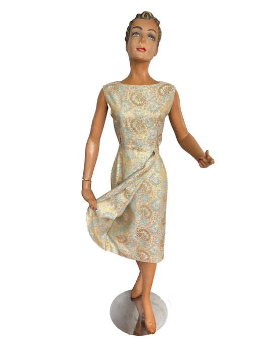 XS | 1950s/60 Gold Brocade Sarong Dress