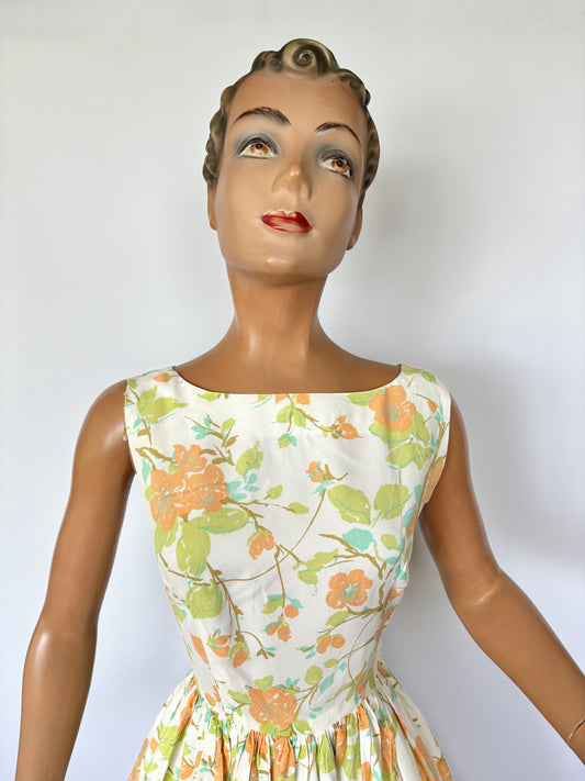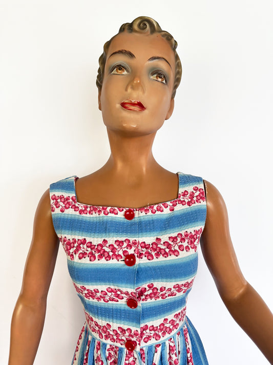 XS | 1950s Two Piece Cotton Dress and Jacket Set with Bandstand Print