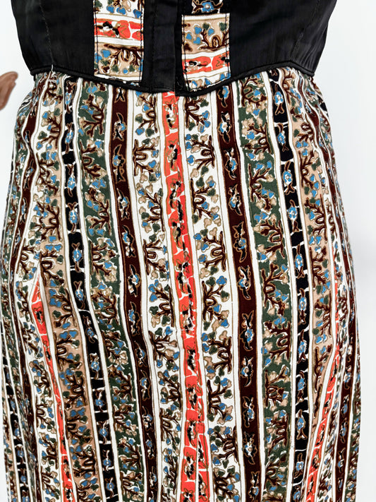XS | 1950s/60s Satin Jacquard Sarong Dress With Feather Motif