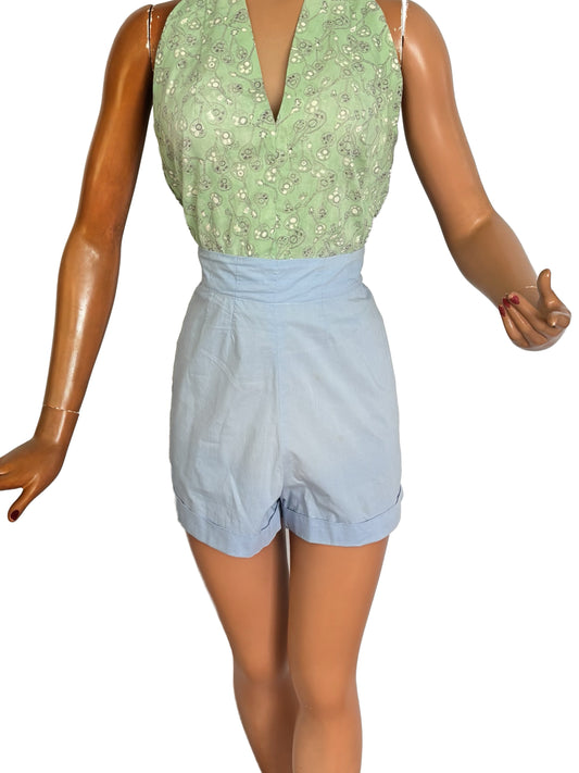 XS | 1950s Light Blue High-Waisted Cotton Shorts by Tony Owen