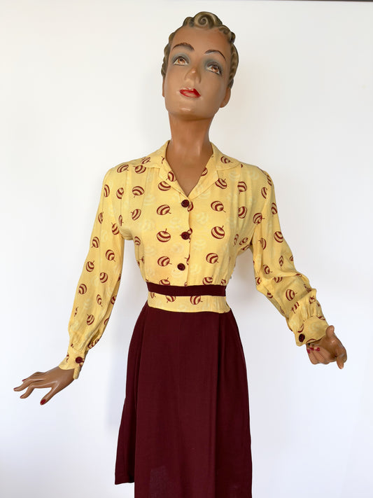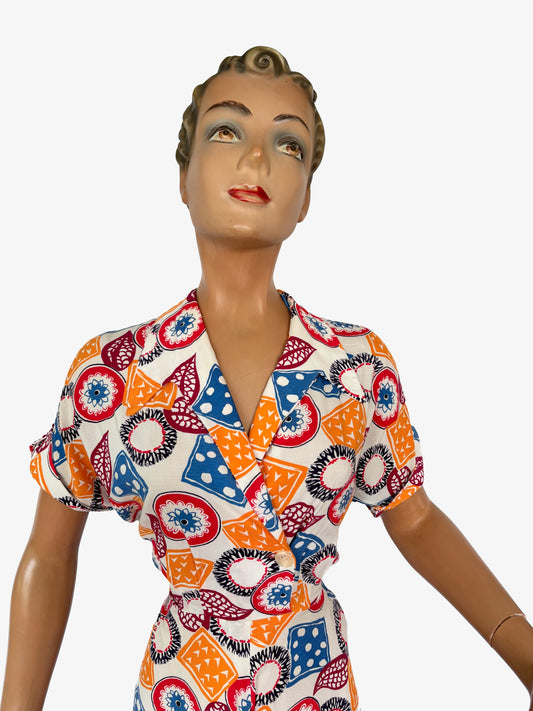 XS/S | 1940s Style Dress Vintage Novelty Print Fabric