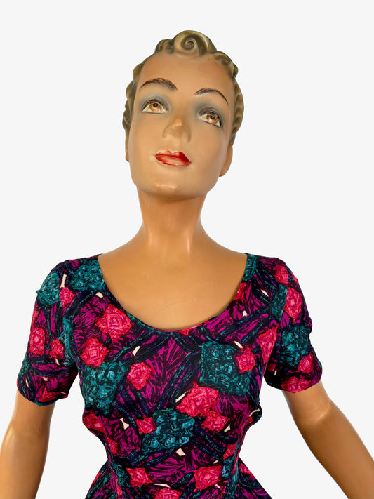 XS/S | 1950s Style Floral Dress Vintage Fabric