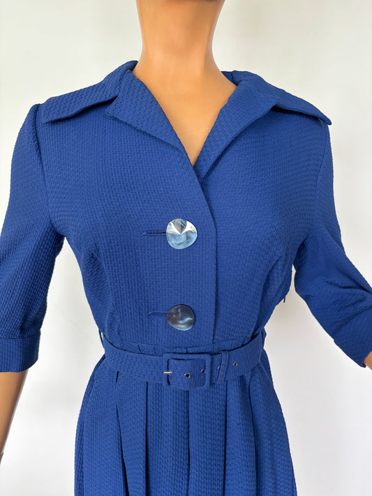 XS/S | 1950s Royal Blue Textured Cotton Dress
