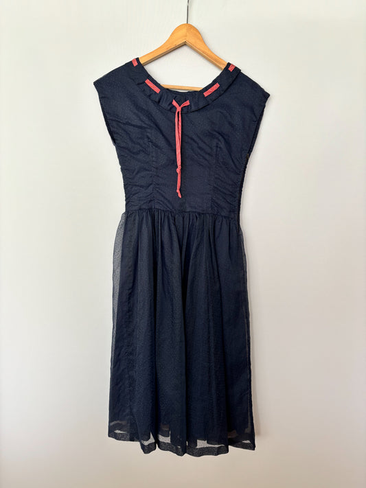 XXS/XS | 1950s Dark Blue Chiffon Polkadot Dress