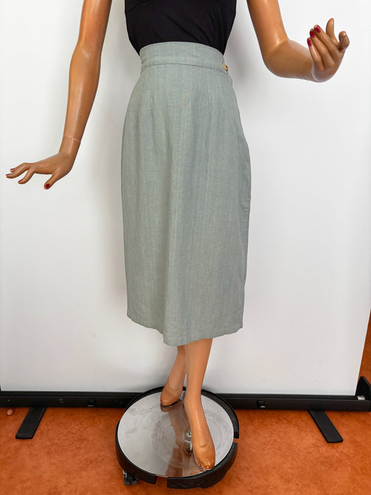 XXS/XS | 1940s Style Grey-Green Linen Cotton Skirt