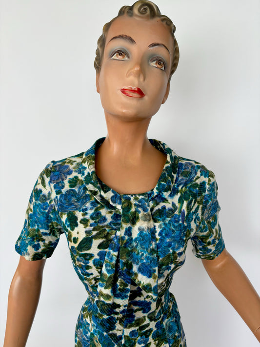 XS/S | 1960s Blue and White Flowers Cotton Dress