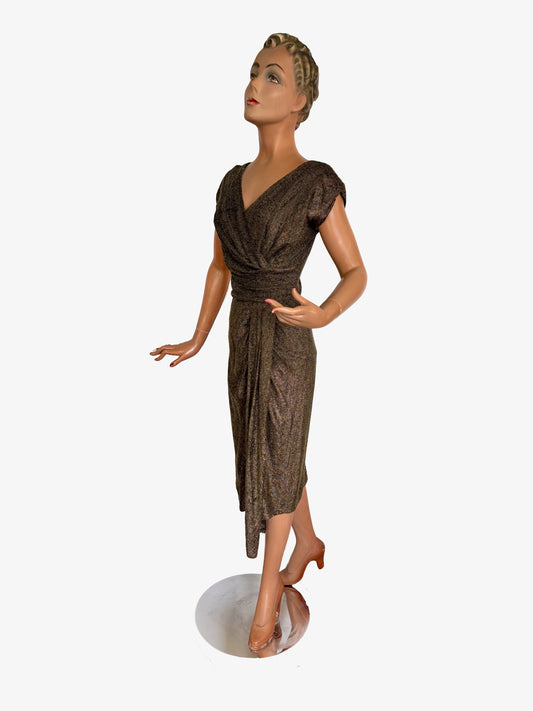 XS/S | 1950s/60s Gold Lurex Wrap Dress