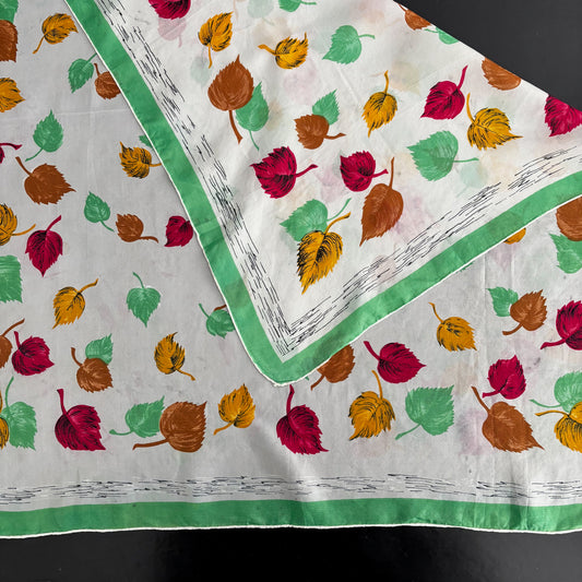 1950s Silk Scarf with Autumn Leaves Print| 76x80 cm