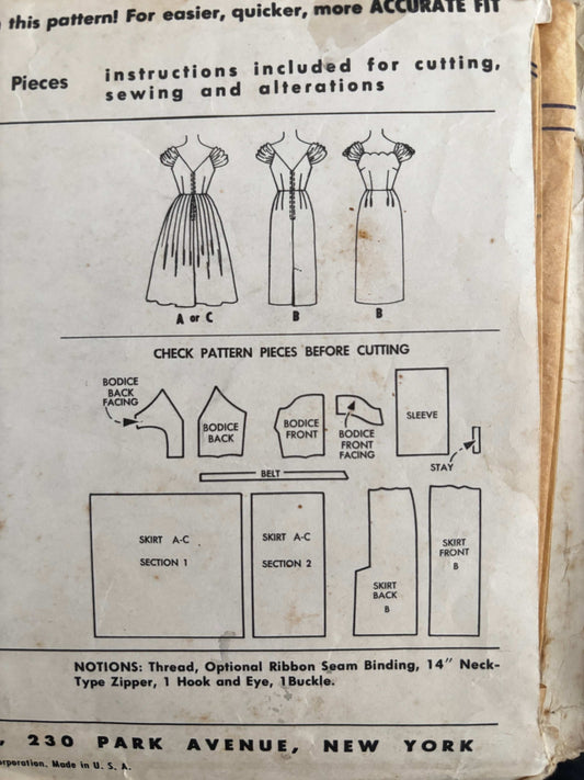 1955 Size 16 Women's Evening Dress - McCall's 3399 Sewing Pattern