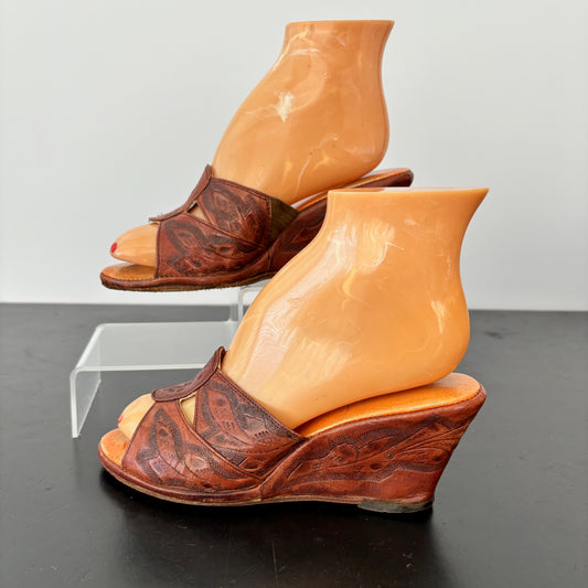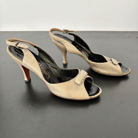 1950er Dominique Romano New York Graue Leder Peep Toe Slingback Heels