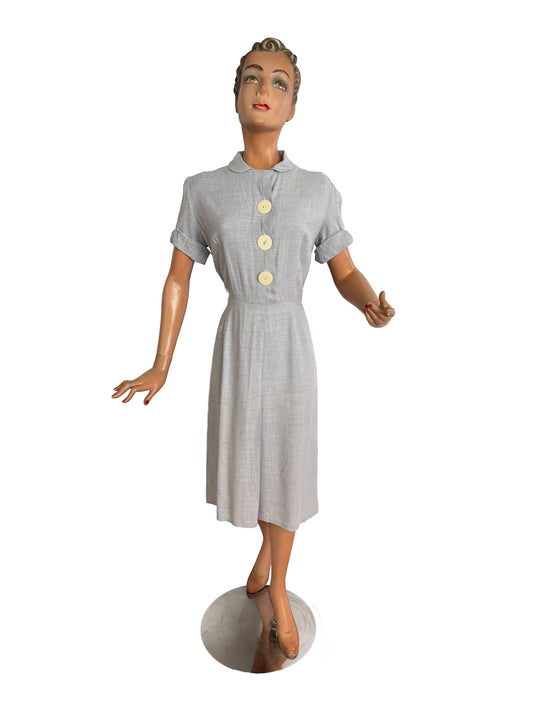 S/M | 1940s/50s Hobbies Lorch of Dallas Light Blue Grey Wool Day Dress