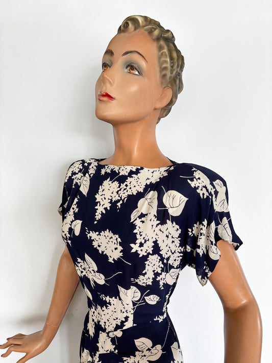 AusverkauftXS/S | 1940s Midnight Blue Crepe Rayon Dress