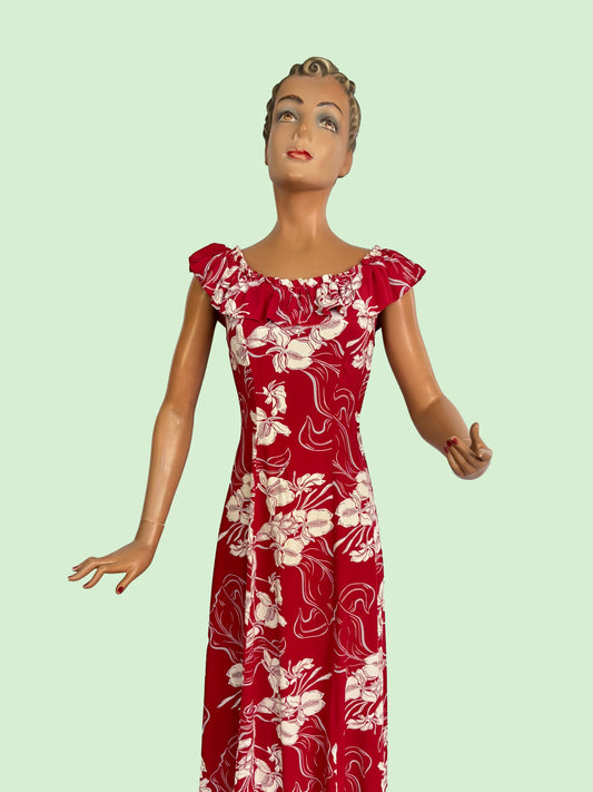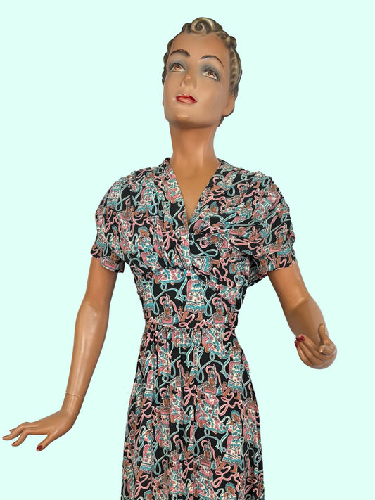 XS/S | 1940s Hawaiian Casuals Cold Rayon Dress With Ruching