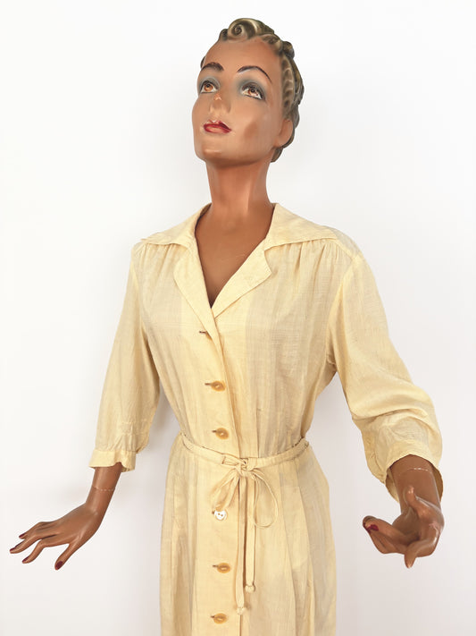 XL | 1950s Structured Cream Cotton Shirt Dress