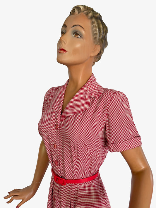 S/M | 1950s St. Michael Red Gingham Cotton Day Dress