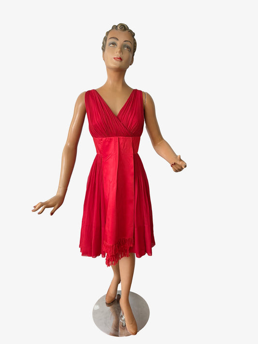 XS | 1950s Red 'Roos Bros' Chiffon Dress