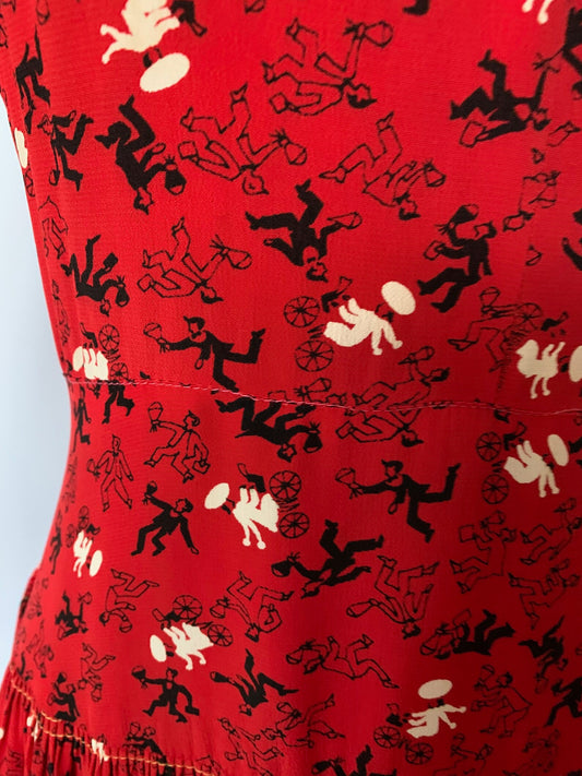 S | 1940s Bouquets and Bicycles 1940s Novelty Print Dress