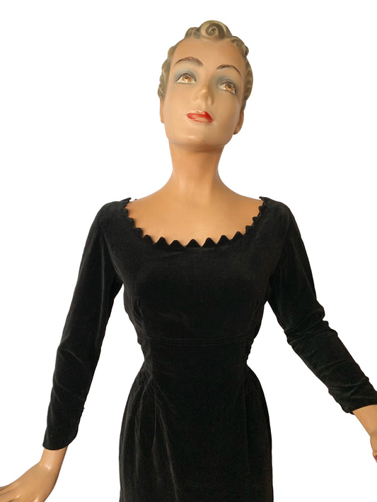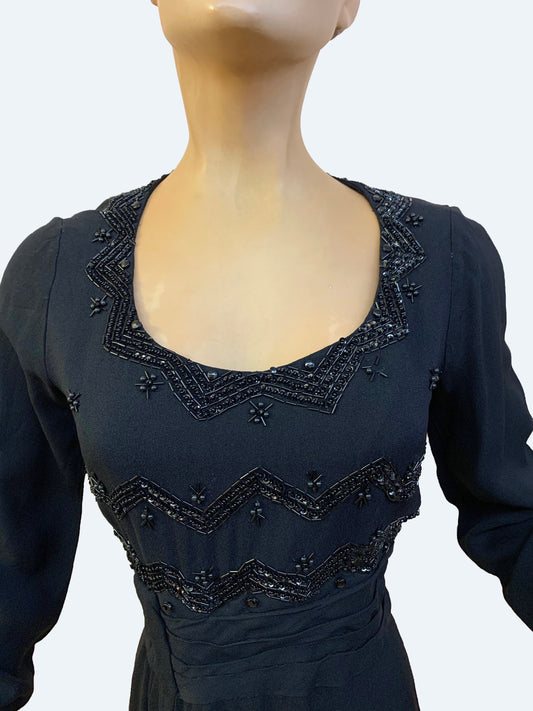 S | Vintage 1930s/1940s Wool Crepe Beaded Dress