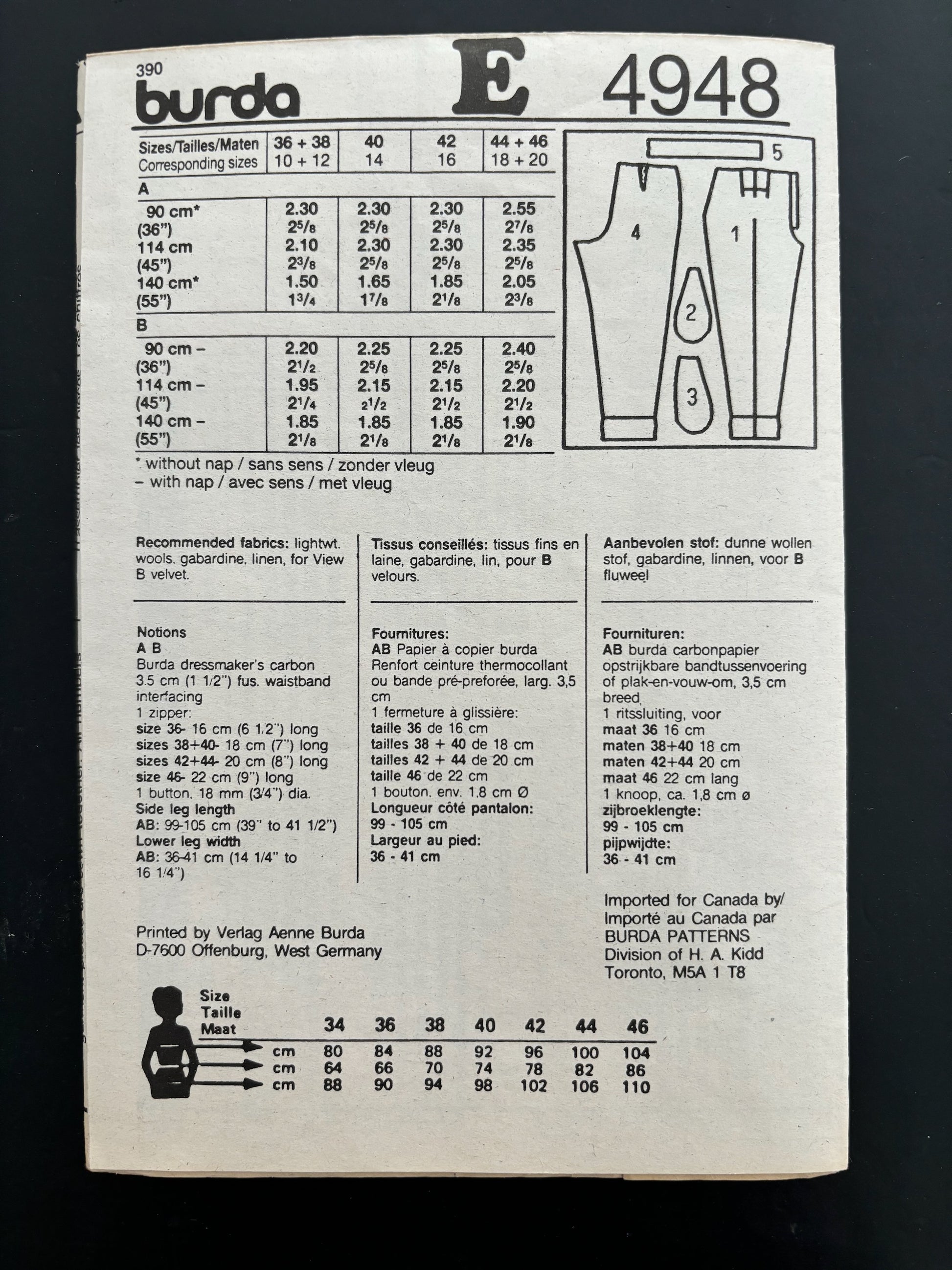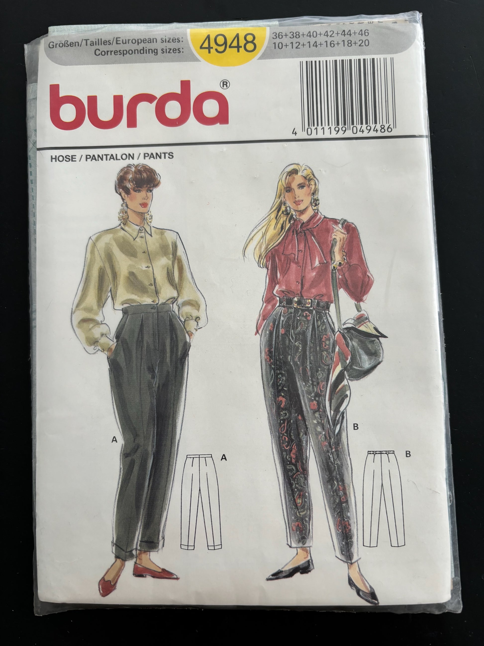 Burda 4948 Pleated Trousers Size 10 -20 Sewing Pattern