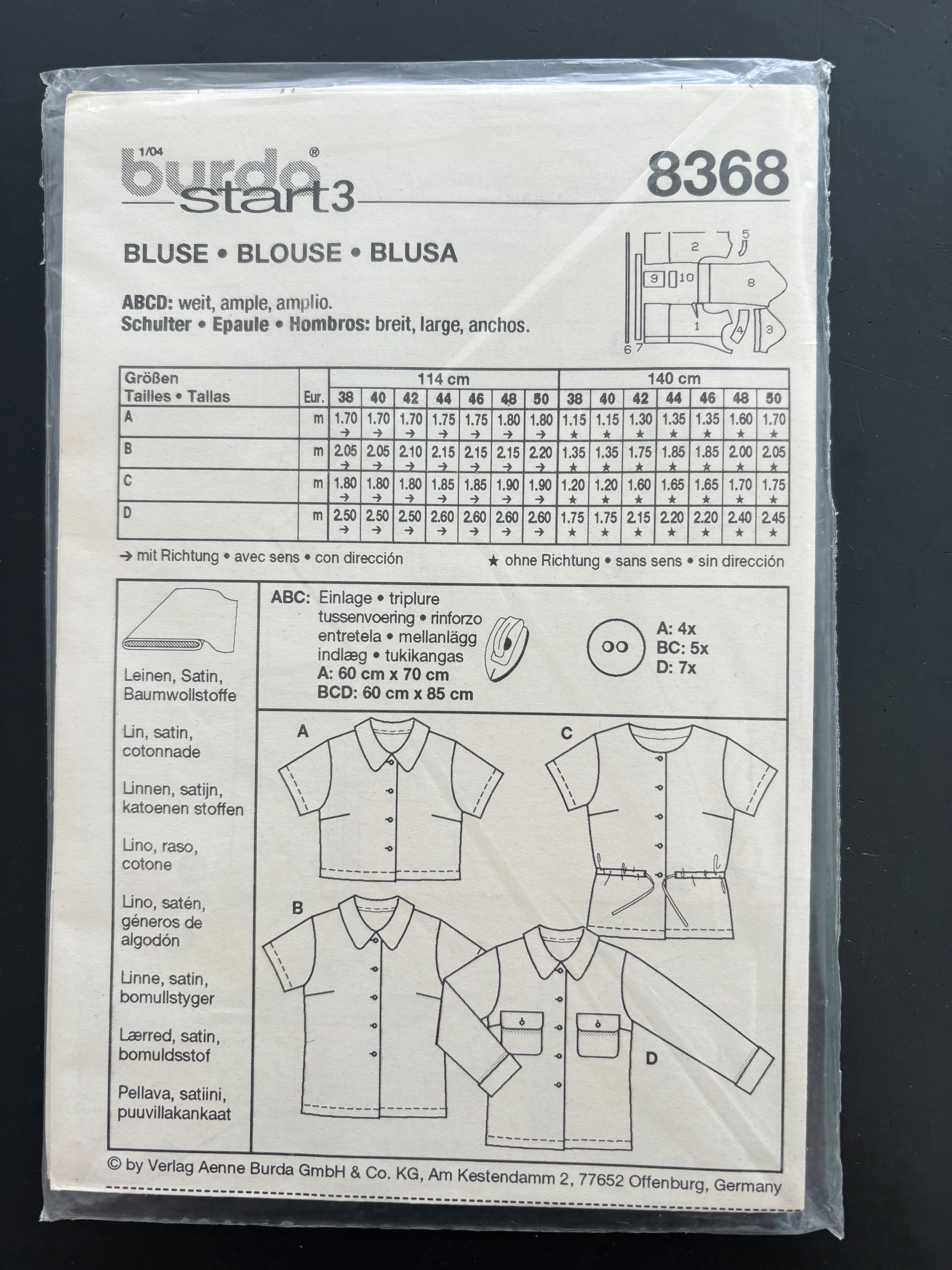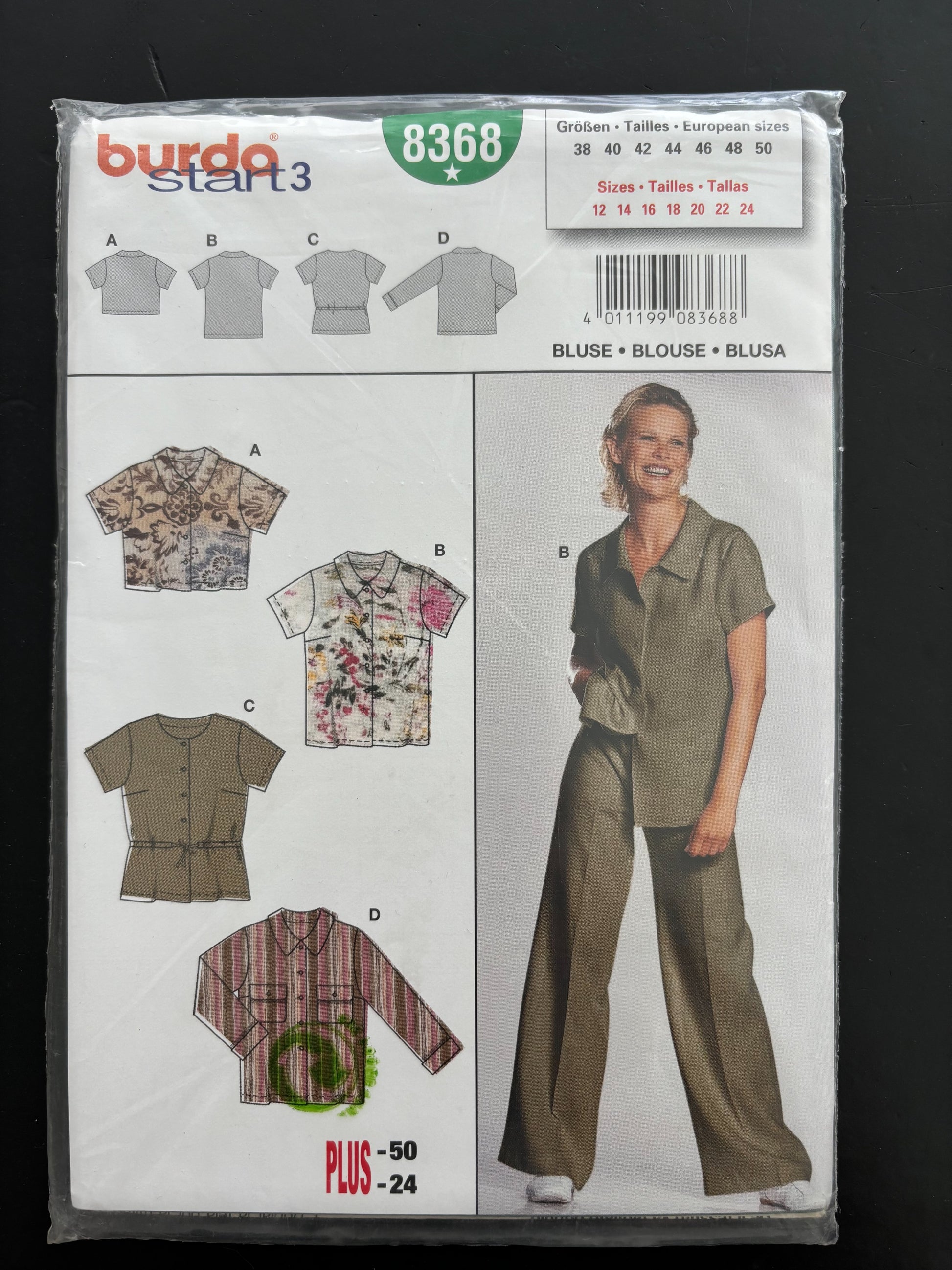 Burda 8368 Sewing Pattern Women's Blouse - Size 12-24