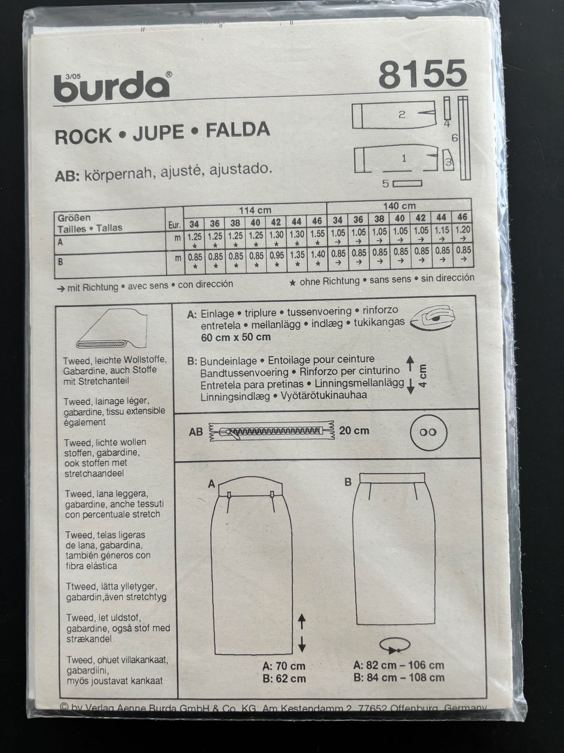 Burda Easy 8155 Pencil Skirt Size 8-20 Sewing Pattern