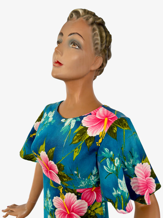 XS/S | 1960s Blue and Pink Hibiscus Hukilau Fashions Dress