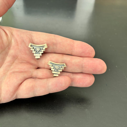 1930s/1940s Sterling Silver Heart Screw Back Earrings