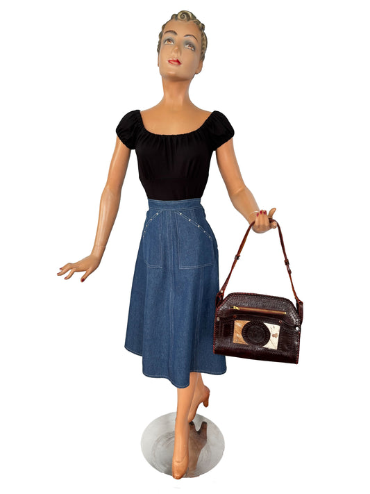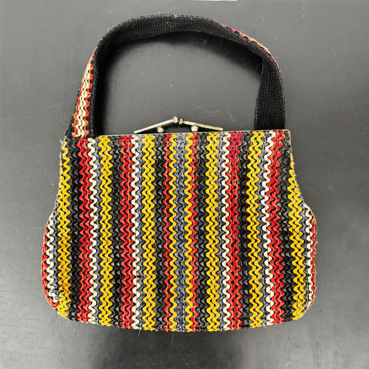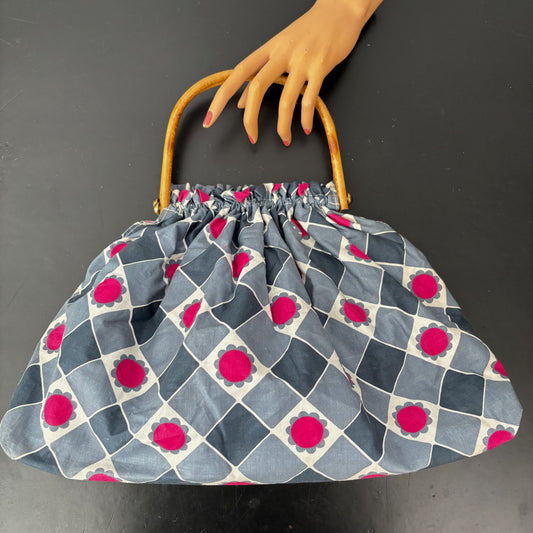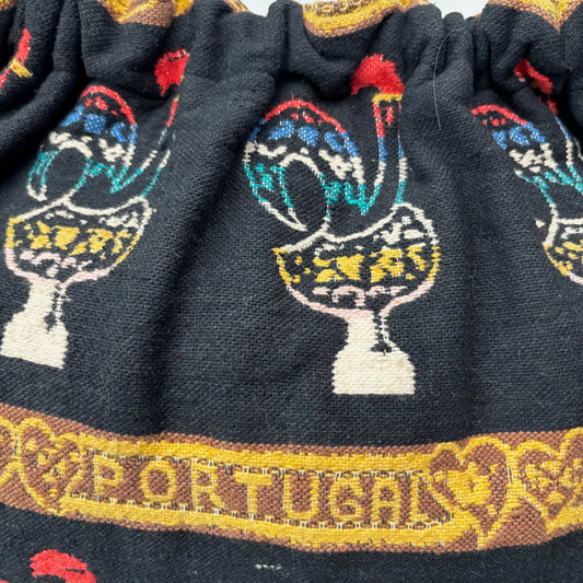 Vintage Portuguese Souvenir Handbag with Bamboo Handle
