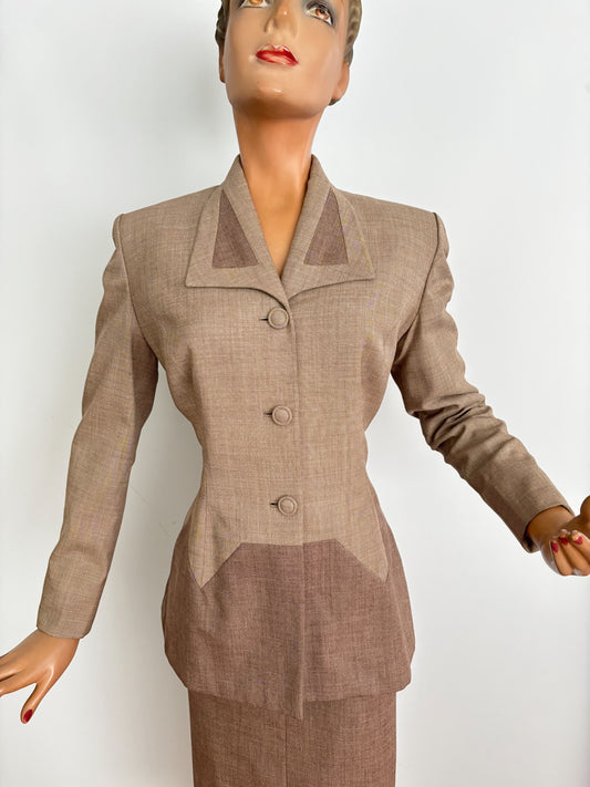 Skirt S Jacket M/L | 1940s Forstmann Gabardine Color Block Suit