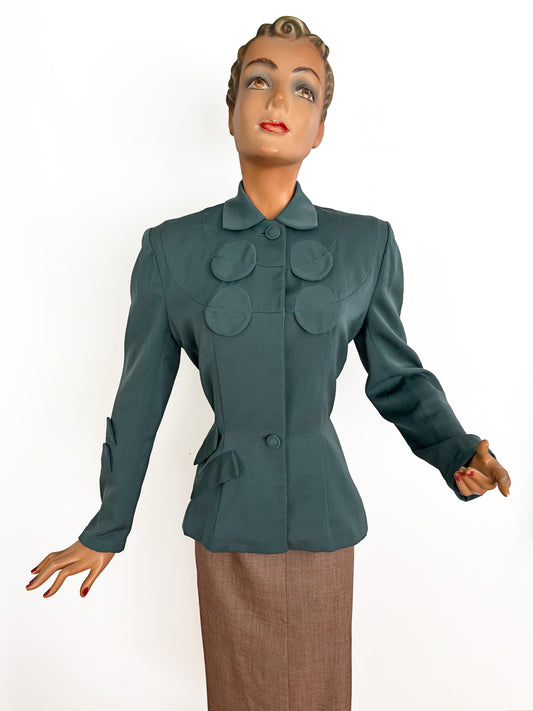 M | 1940s Lilli Ann Asymmetrical Green Jacket