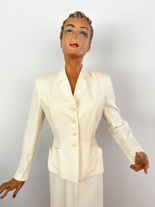 S | 1940s Cream Wool Gabardine Summer Suit by Sacony, Palm Beach