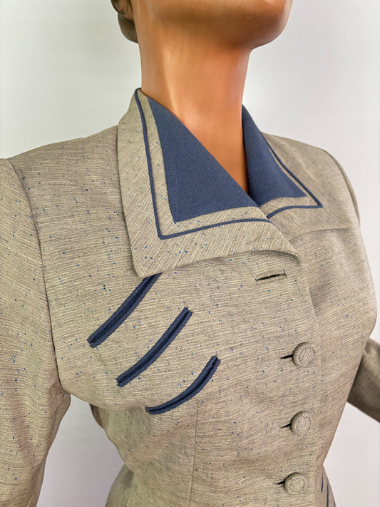 XS/S | 1940s Lilli Ann Speckled Grey Gabardine Wool Suit