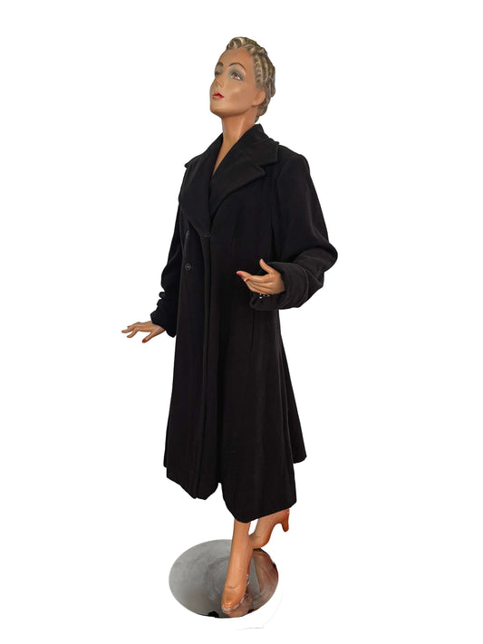 3XL | 1940s Style Black Wool Coat With Polka Dot Lining
