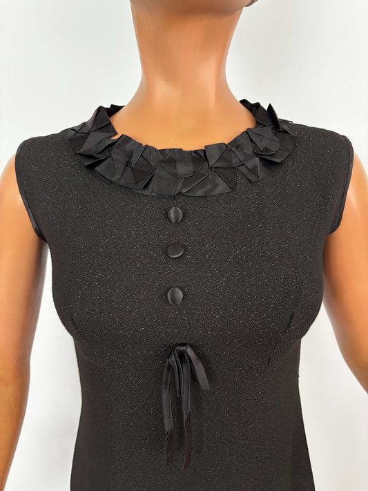 S | 1960s Little Black Lurex Dress With Satin Trim