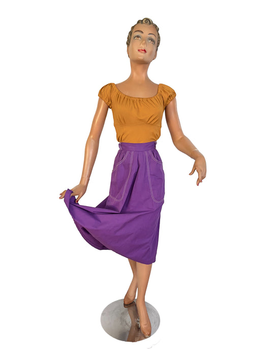 XS/S | 1950s Queen Casuals Purple Cotton Skirt With Pockets
