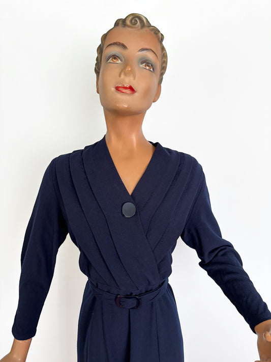 2XL/3XL | 1940s Navy Blue Wool Dress