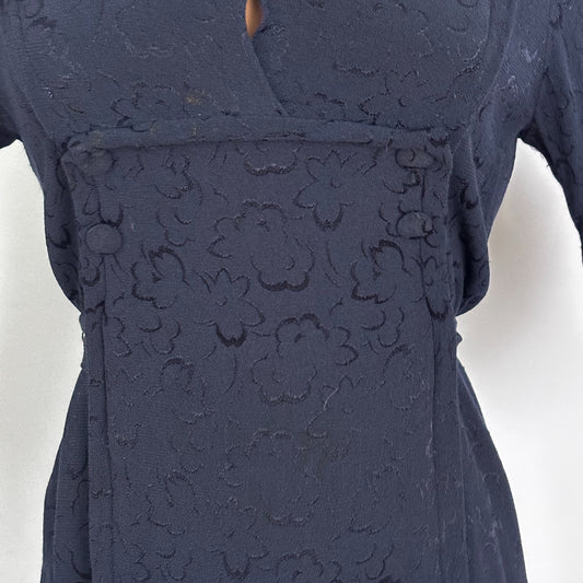 L | 1940s Navy Crepe Dress With Floral Motif