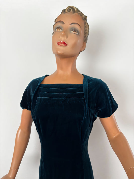 L/XL | 1940s Petrol Velvet Ankle Length Evening Dress