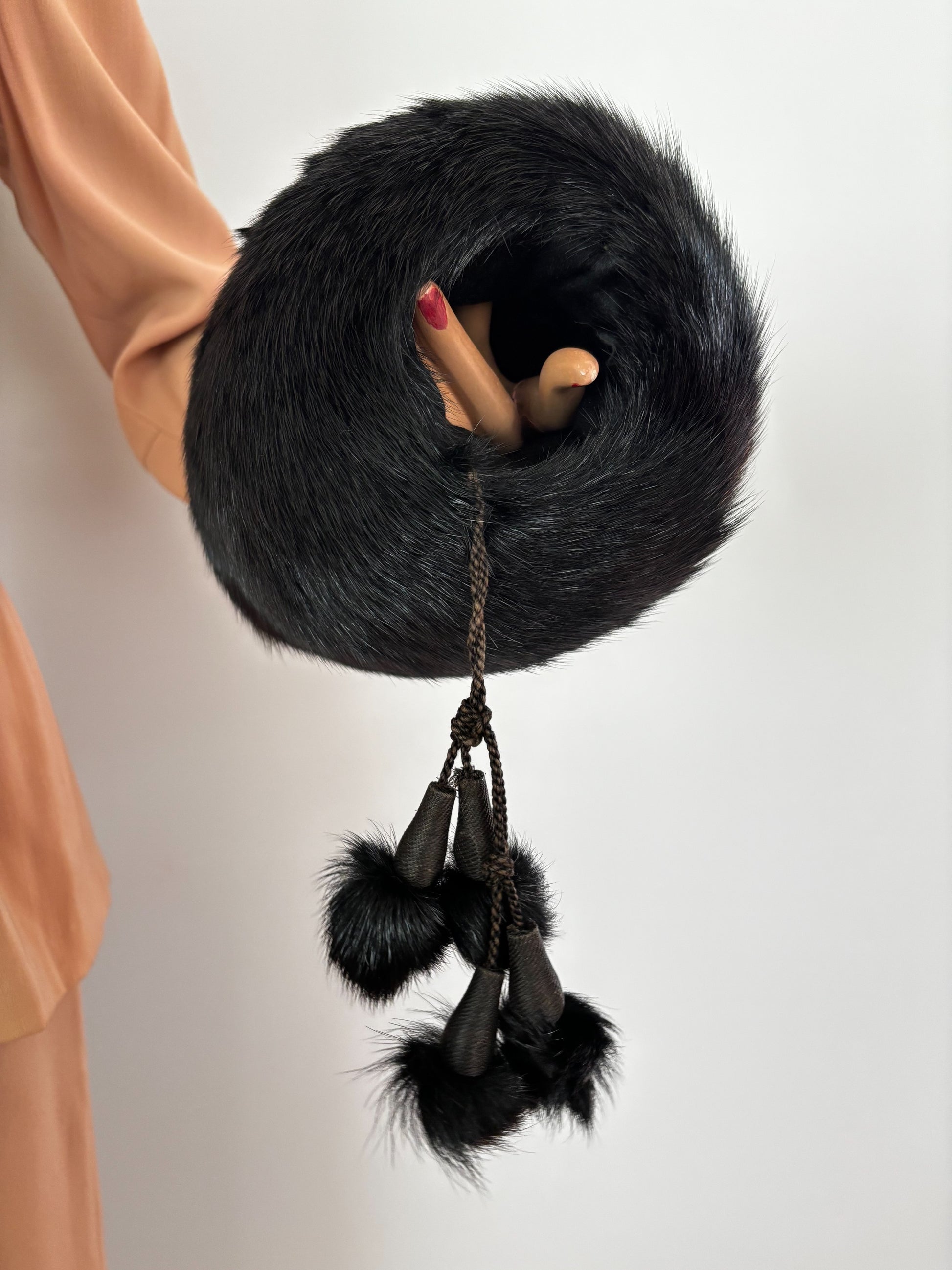 1940s Black Mink Fur Muff With Pompons