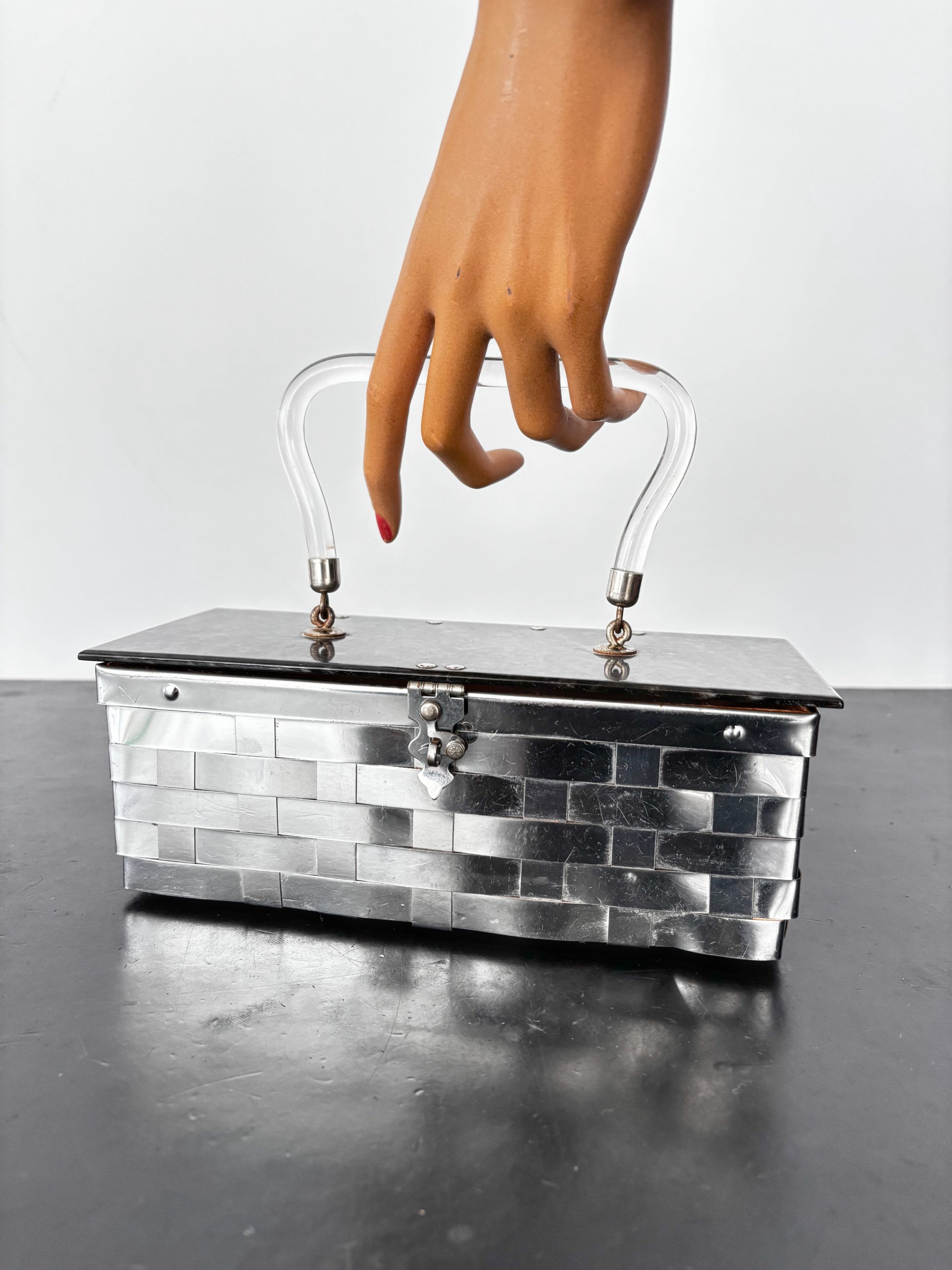 1950s Dorset Fifth Avenue Silver Metal Weave Box Bag