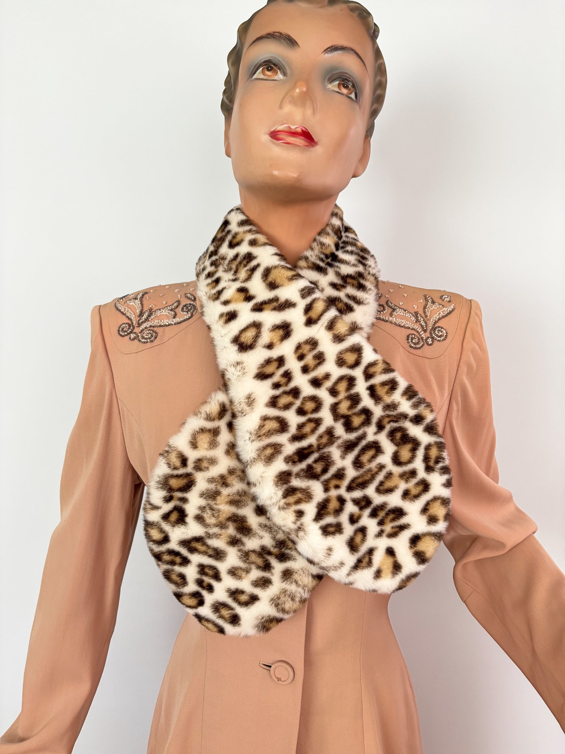 1950s Syle Faux Fur Leopard Print Muff And Scarf Set