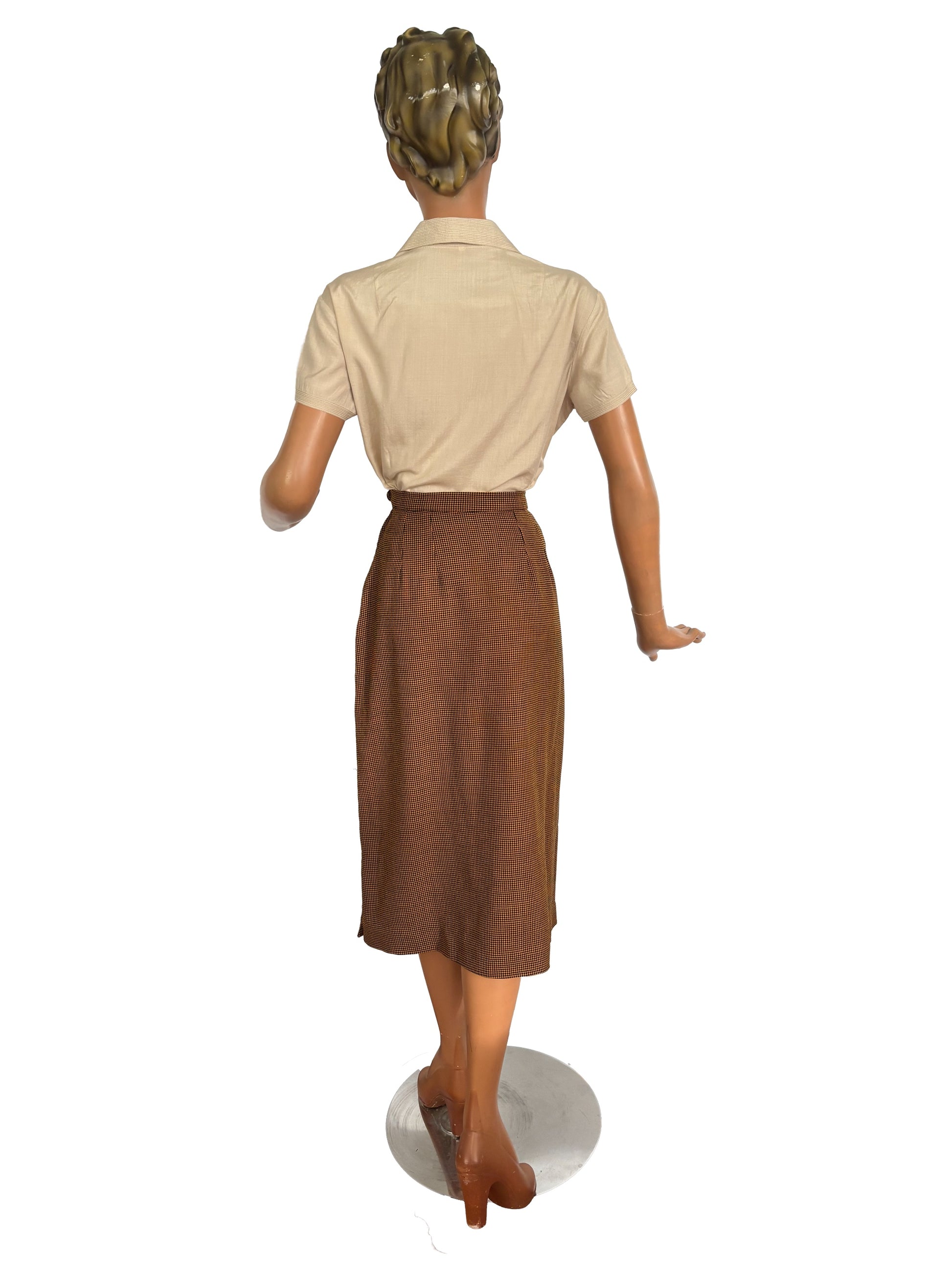 There are darts at the back and shoulder. A hidden button under the collar. The front placket sits slightly off due to the original button placement, but this is not visible when worn and does not affect the overall appearance.