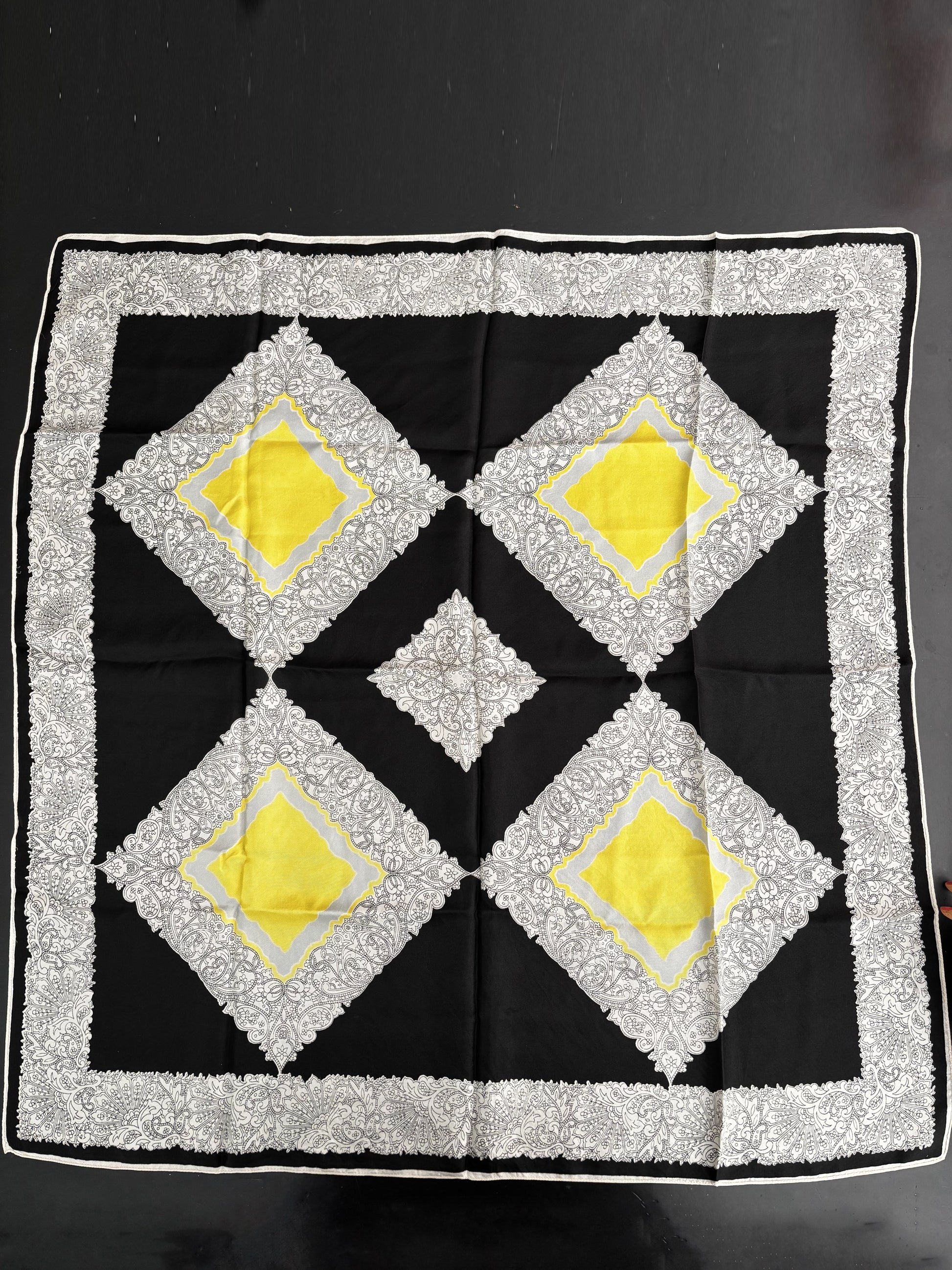 • Black with yellow and white paisley squares 78 × 80 cm / 30.75" × 31.5"