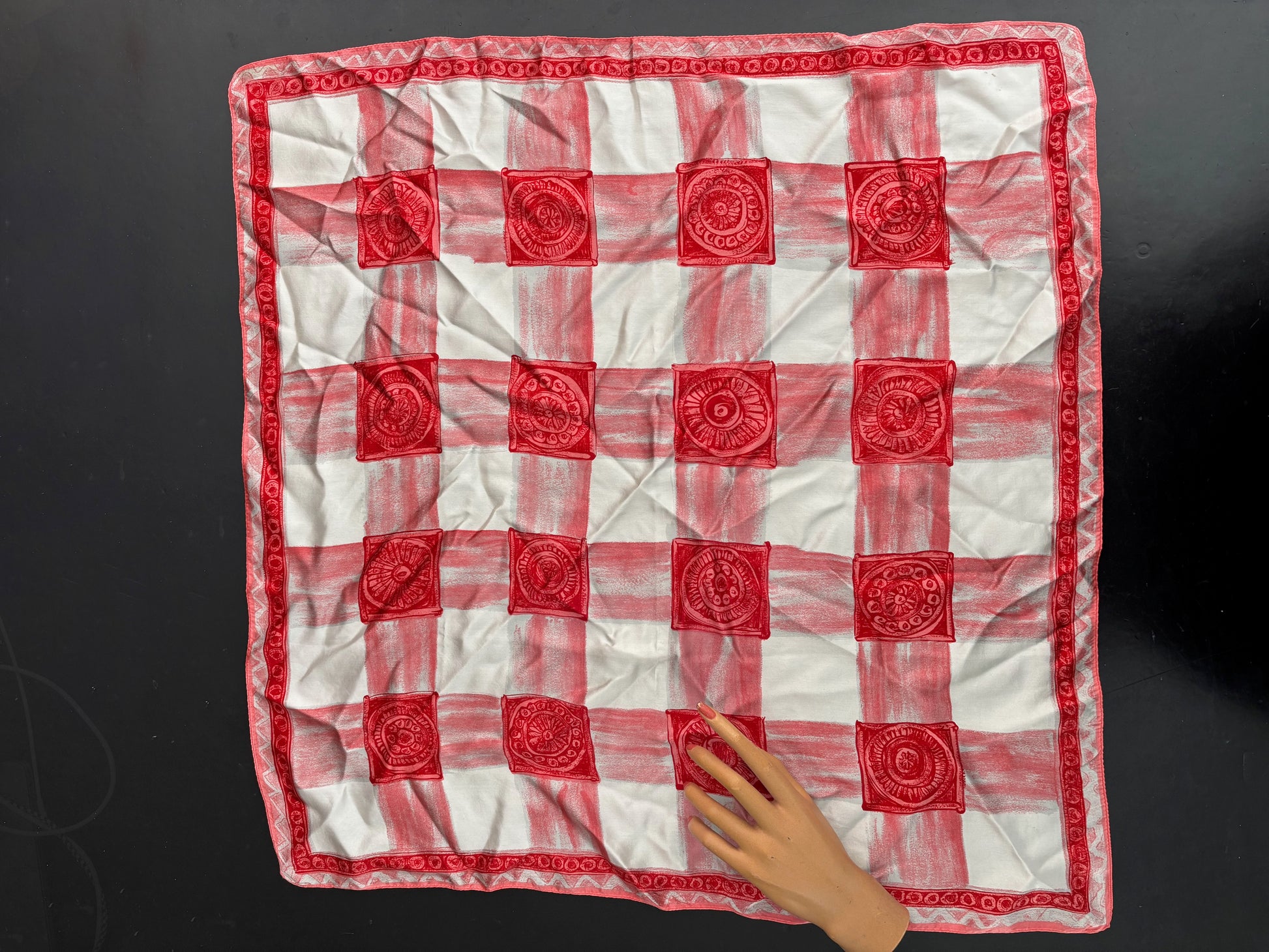 • Red and white checkered with circular motif 65 × 66.5 cm / 25.5" × 26.25"