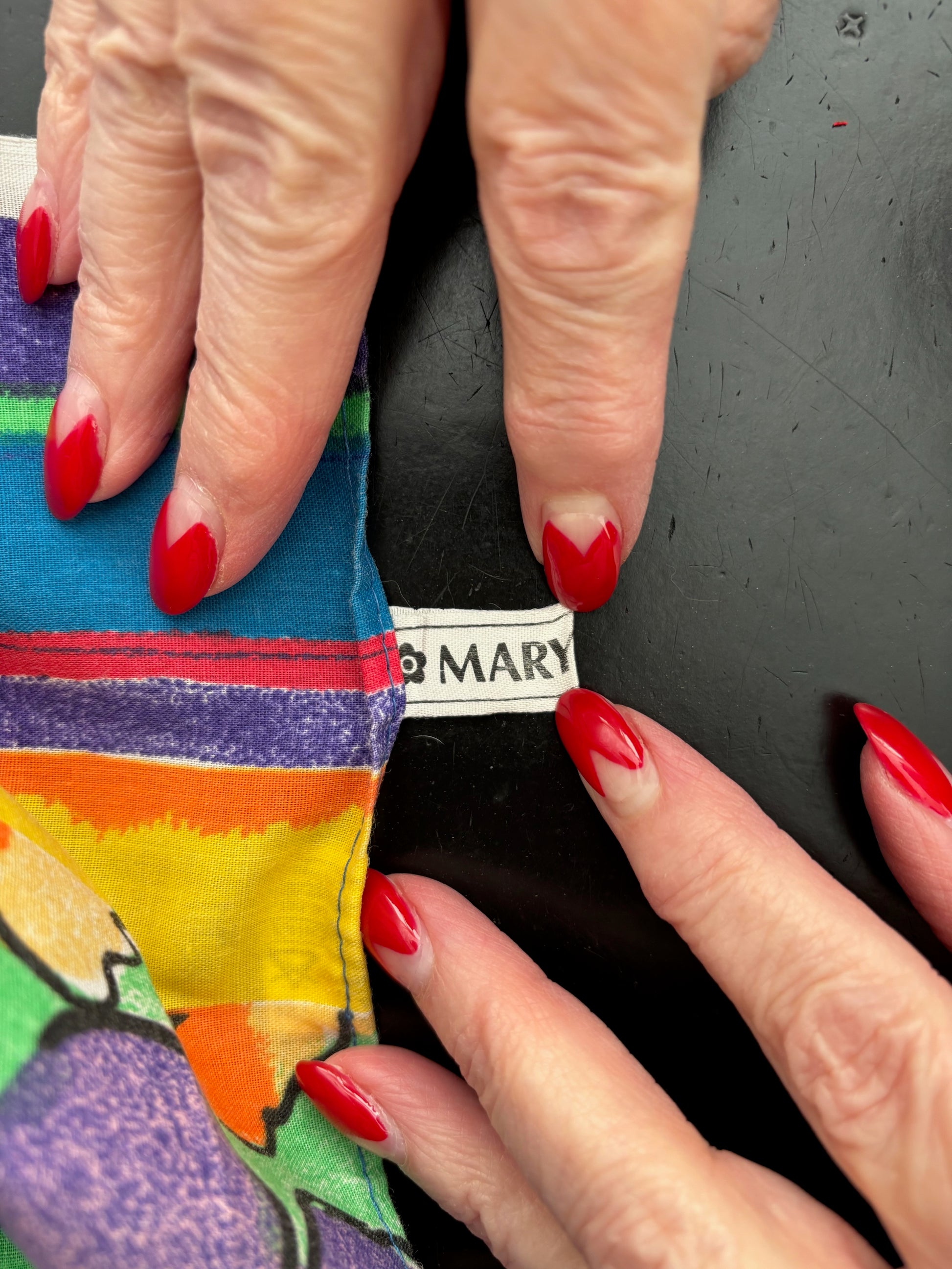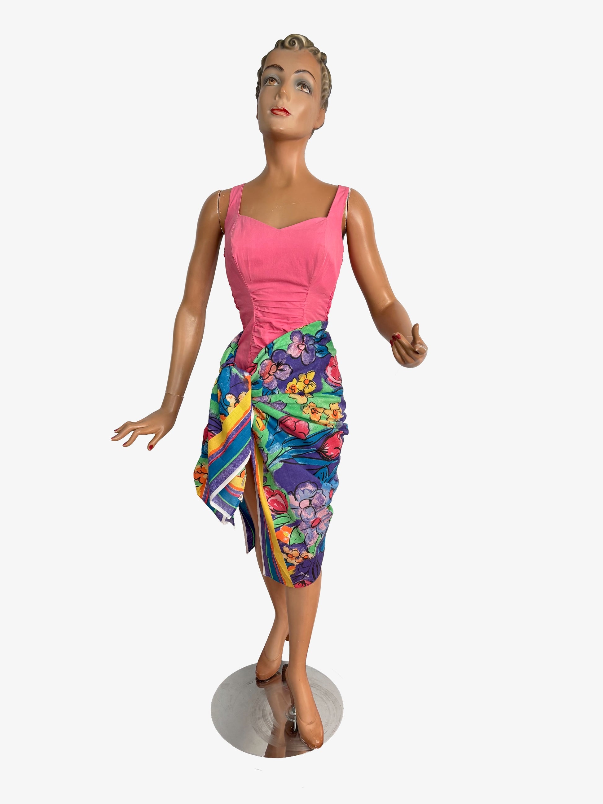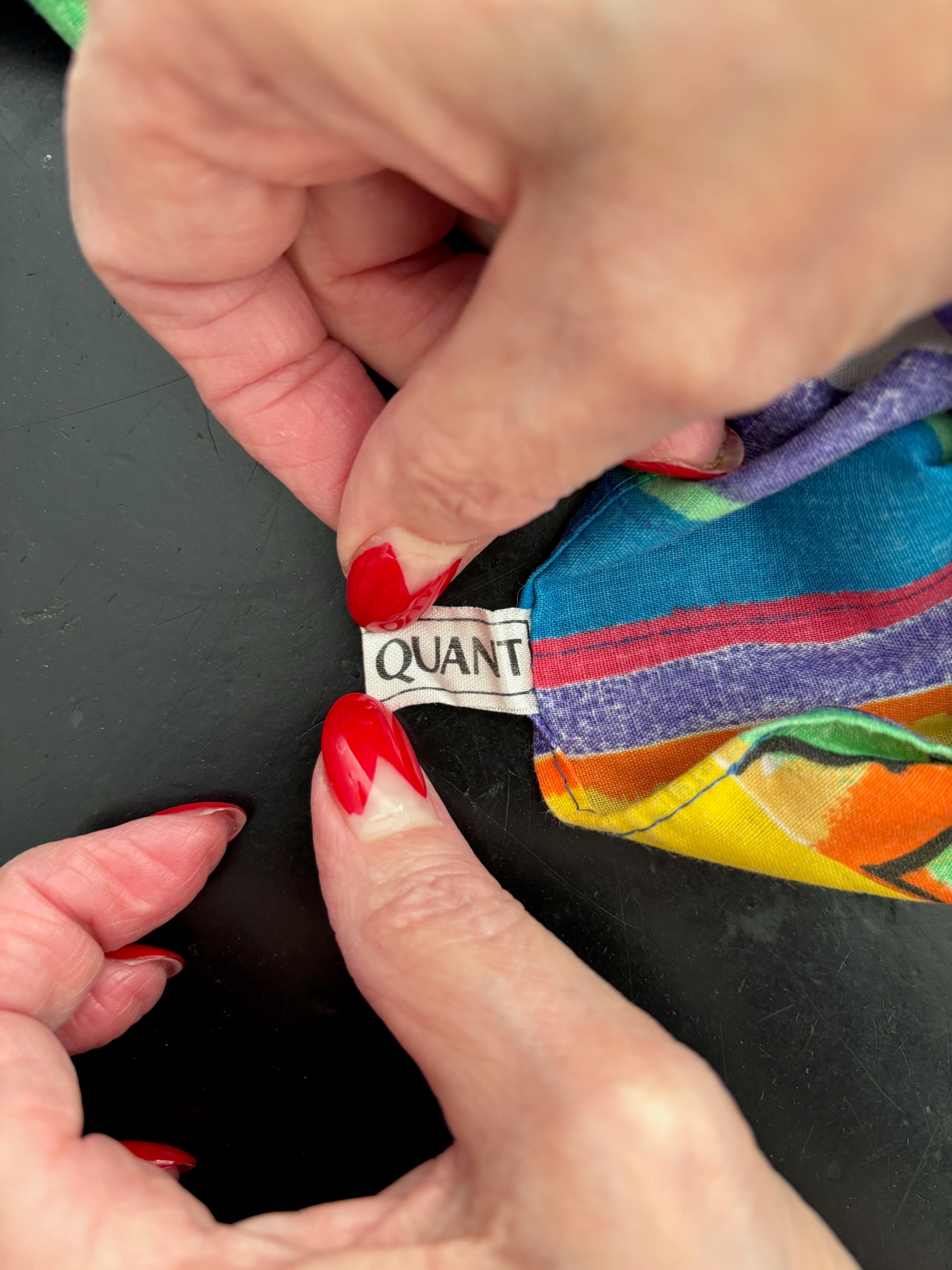 This piece is labelled Mary Quant. Its generous size makes it easy to wear in different ways. It can be worn as a scarf, shawl, pareo, sarong or wrap skirt. Shown here styled as a wrap skirt.